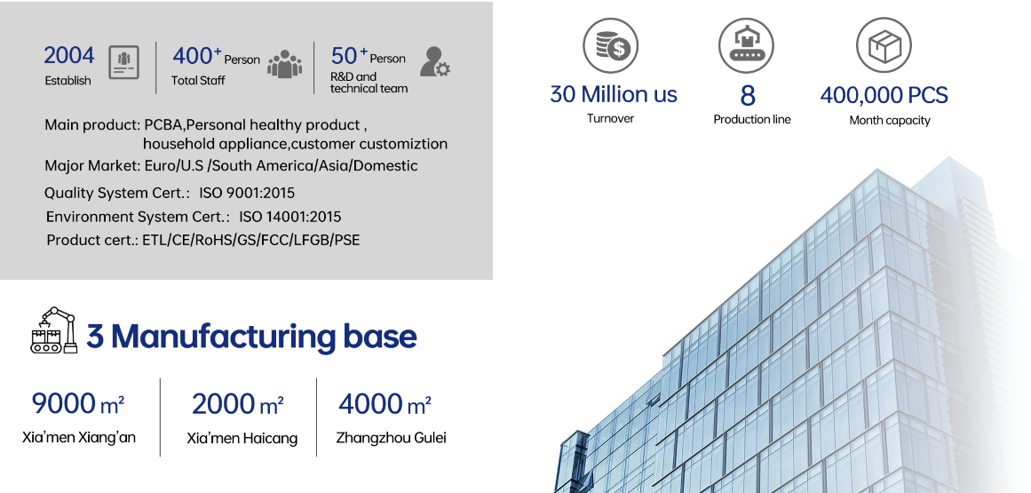 DEJUNC TECHNOLOGY CO., LTD located in the cosastal city of XIAMEN with convenient transportation, is a professional manufacture in electric home products. We service cusromers from Europe, Americ and Asia with famous brands and largest retailers. It’s a high-tech enterprise dedicated to develop, design, manufacture and sell personal healthiy product and household appliance.